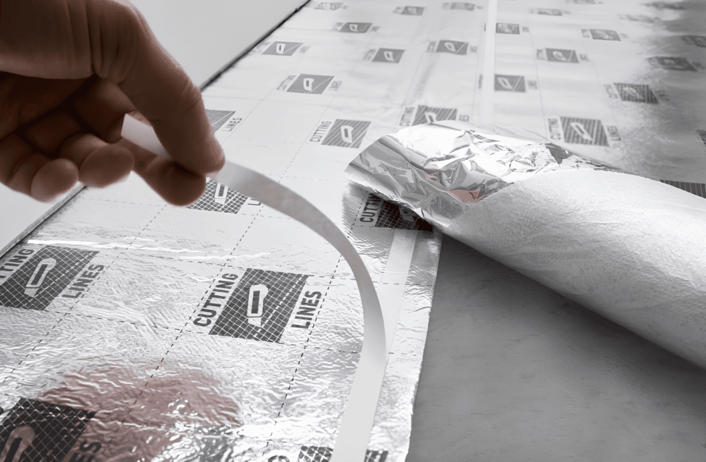 Z kolei innowacyjne rozwiązanie z wykorzystaniem pasków z taśmą rzepową na wierzchu folii zabezpiecza podkład SECURA HEAT (układny na folii) przed jego przemieszczeniem.