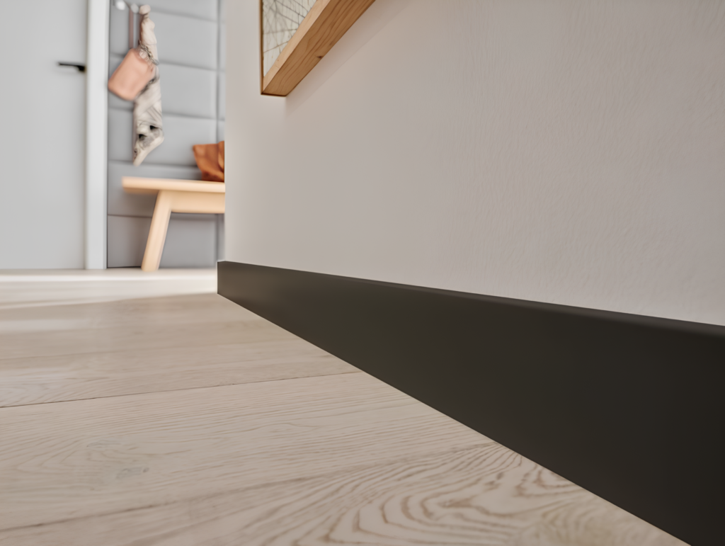 Dla poszukujących awangardowych rozwiązań świetnie sprawdzi się czarna listwa przypodłogowa. Bardzo dobrze pasować będzie do wnętrz w ciemnych kolorach, jak i również można ją zastosować jako kontrast, oddzielający jasną ścianę z jasną podłogą.