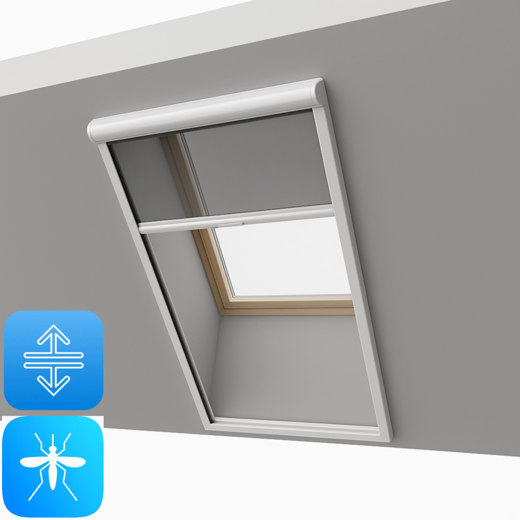 Produkt przystosowany jest do pracy w pozycji pochyłej (typowej dla okien dachowych). Konstrukcja pozwala na stabilne prowadzenie siatki i płynny nawój bez luzów czy ryzyka zwisu materiału.
