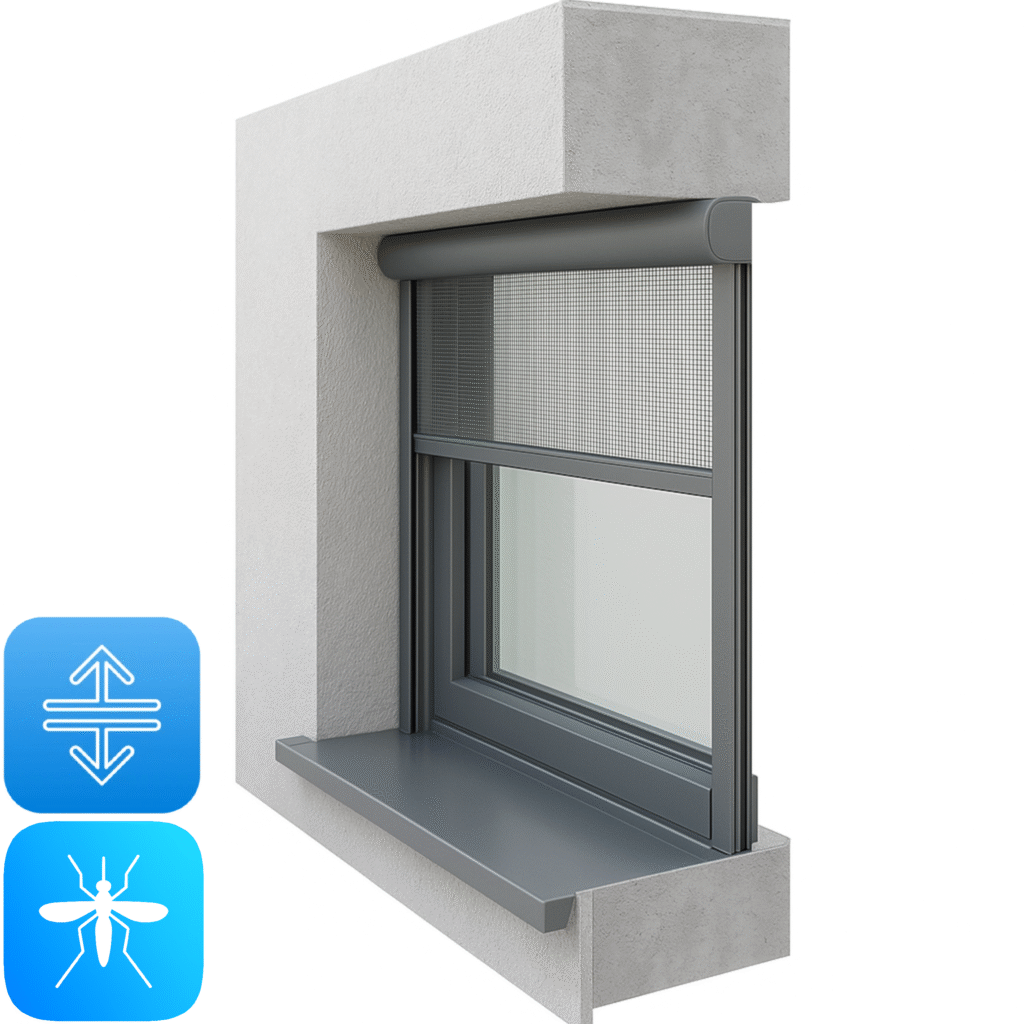 System przystosowany jest do pracy na pionowych oknach o standardowych wymiarach. Dzięki solidnym prowadnicom i dopracowanemu mechanizmowi nawija siatkę równomiernie i bez zacięć. Kaseta oraz prowadnice wykonane są z odpornego na warunki atmosferyczne aluminium, co zapewnia długowieczność systemu.