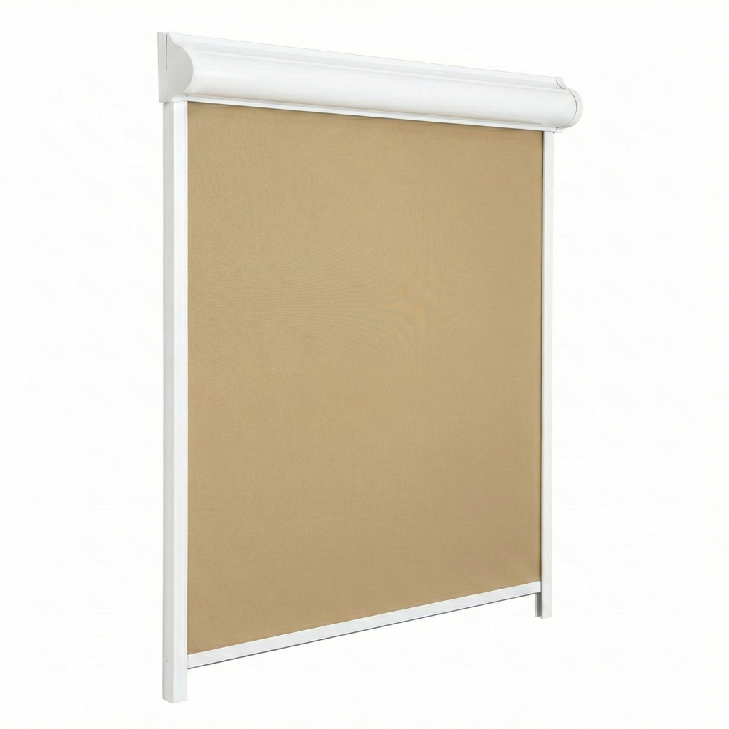 Roleta materiałowa dekoracyjna rozpraszająca światło w aluminiowej kasecie z prowadnicami (do okien aluminiowych)