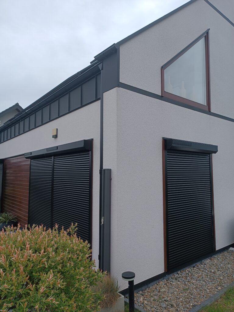 - Dla domów antracytowych – kolor rolet w pełni antracytowy